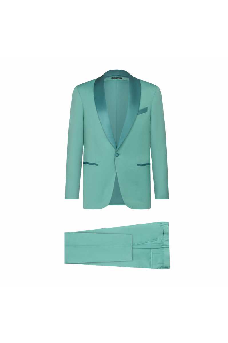 ABITO DA SERA VENEZIA IN TESSUTO VERDE GIADA CON REVER A SCIALLE